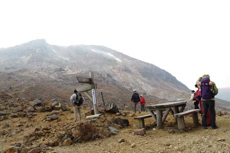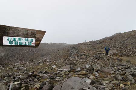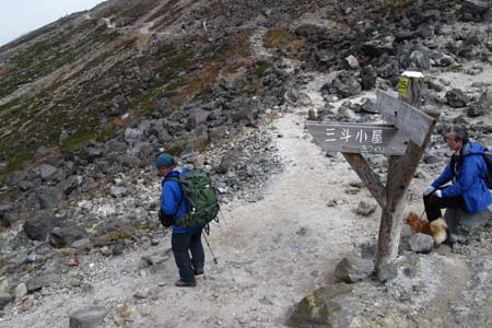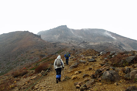 茶臼岳の中腹を巻いて避難小屋へ向かう |