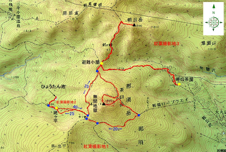那須岳(朝日岳・茶臼岳・姥ヶ平)登山地図 |