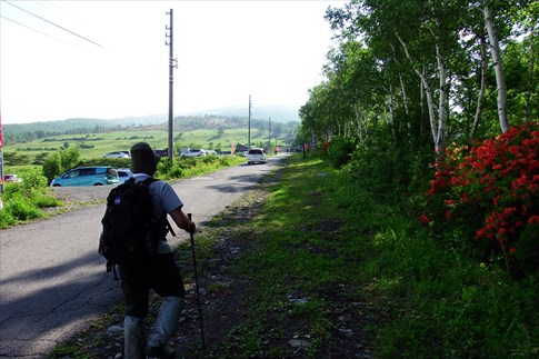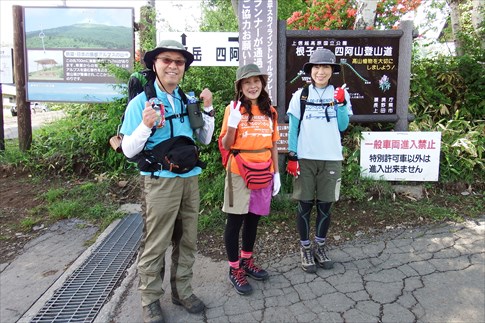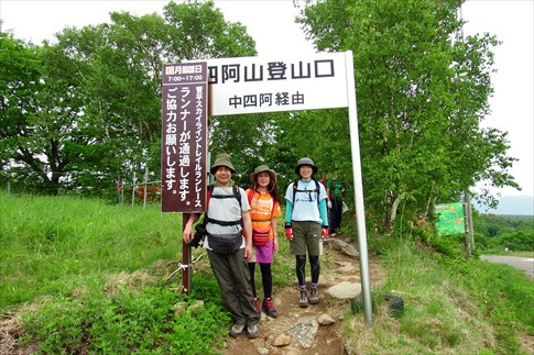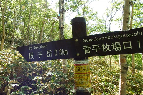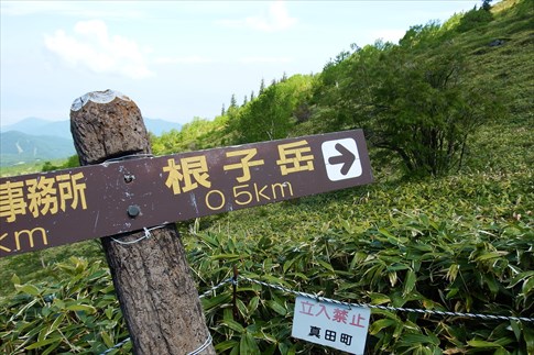 | 最寄り駐車場は満杯で最下段の駐車場から登山口へ向かう | 根子岳登山口(トイレあり) | |||