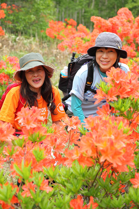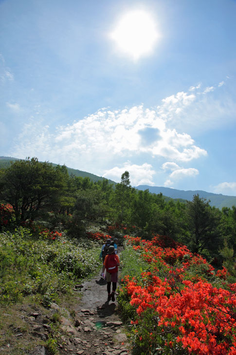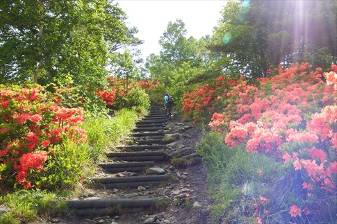| 岩稜の奥に四阿山を望む | ムラサキヤシオ | |||