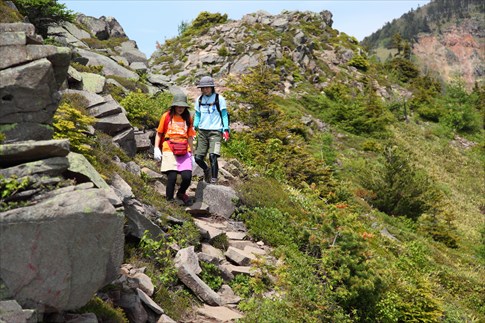 | 頭上が開けガレ場になると根子岳山頂が近い | ||||