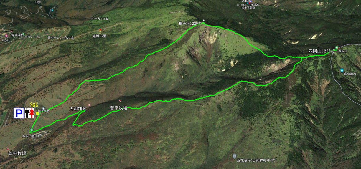 | 根子岳&四阿山鳥瞰図 ヤマレコ⇒https://www.yamareco.com/modules/yamareco/detail-4439584.html |