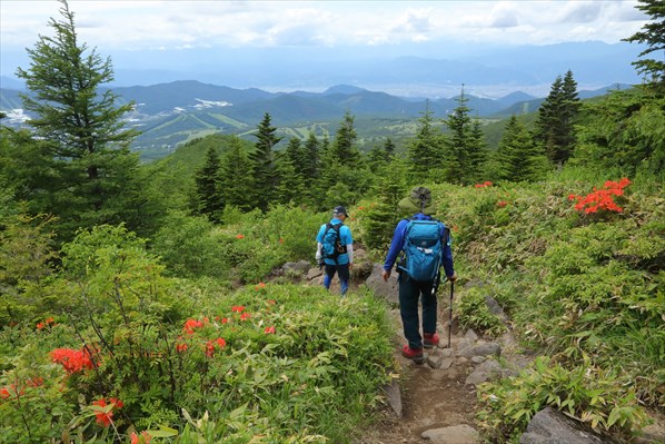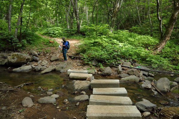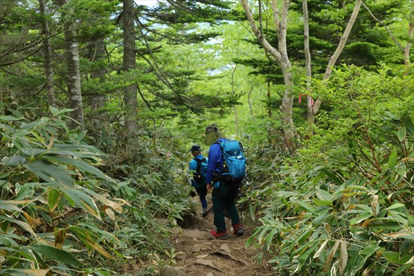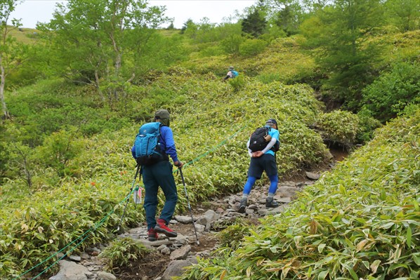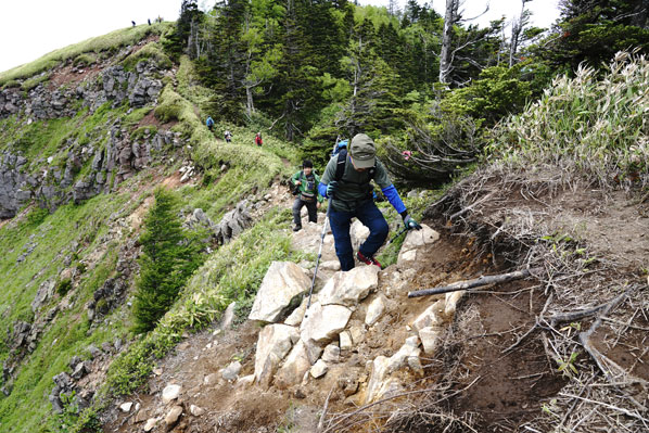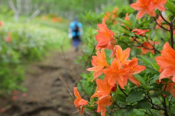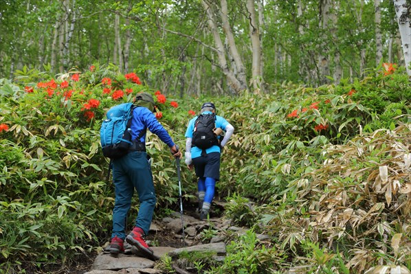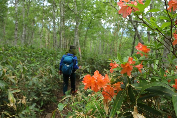 | 登山道崩落箇所だが問題なく通過できる | ムラサキヤシオ | |||