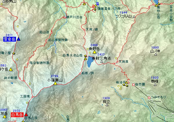 クリックすると「白馬大池」近辺の広域地図を見ることが出来ます。 |