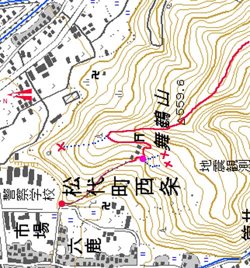 | 舞鶴山直下の白鳥神社分岐点 この景色が見えたら左ルートを選択 警察学校方面に下り込んでしまうので要注意 |