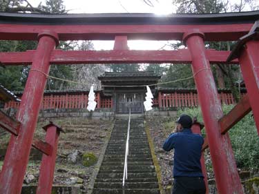 | 下山時撮影 白鳥神社分岐点を見過ごしてしまい藪漕ぎのすえ鳥居に辿り着く (^_^;) |
