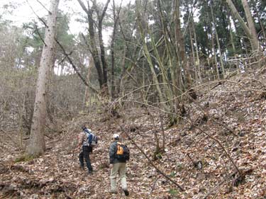 | 大半が松食い虫の被害に・・・ | ここからの急登をクリアすると稜線に出る | |||
