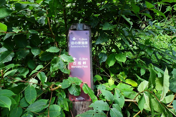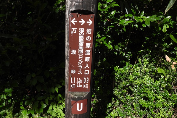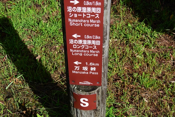 | 車道を斜めに横切り沼の原湿原入り口へ | 沼の原湿原まで1.5` | |||