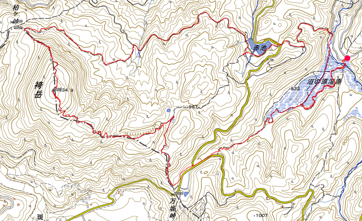 | 沼の原湿原〜袴岳鳥瞰図ルート地図 (計曲線 50M 主曲線 10M) |