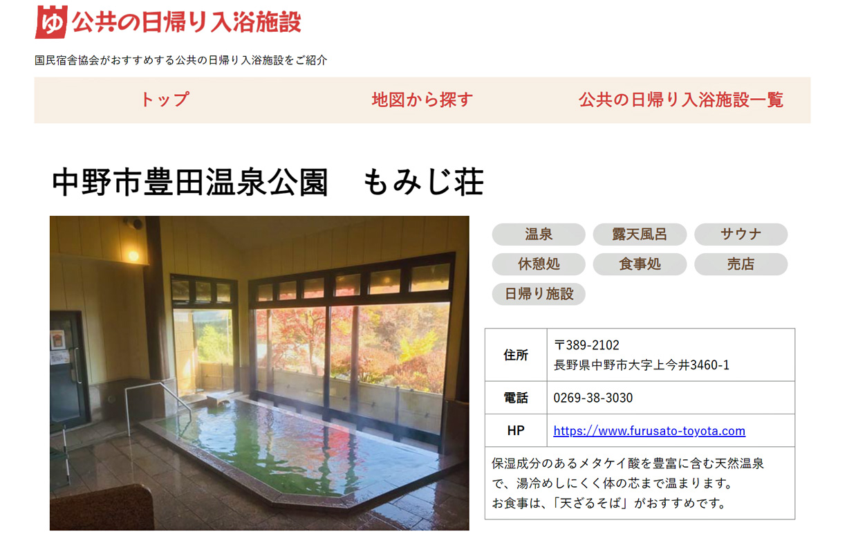 | 中野市豊田温泉公園もみじ荘/国民宿舎公式サイトからスクショ | ||||