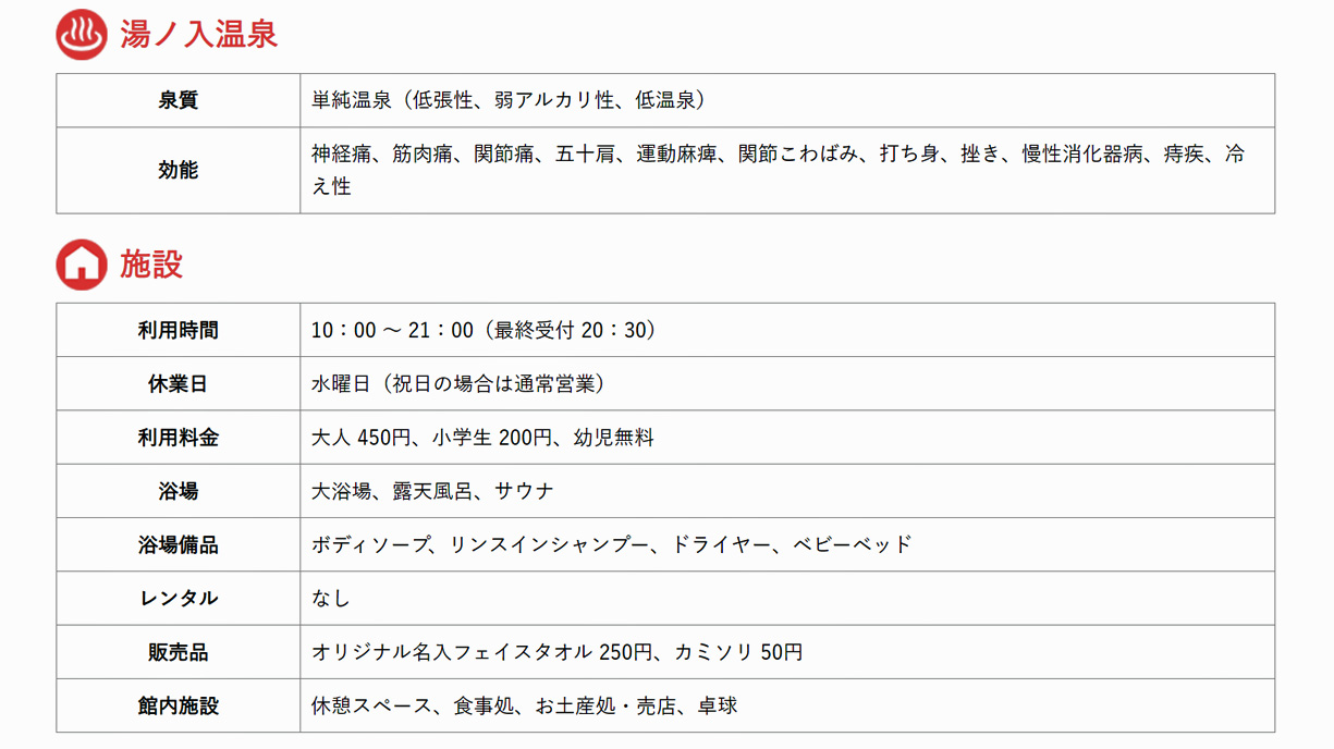 | 営業時間ほか/国民宿舎公式サイトからスクショ | ||||