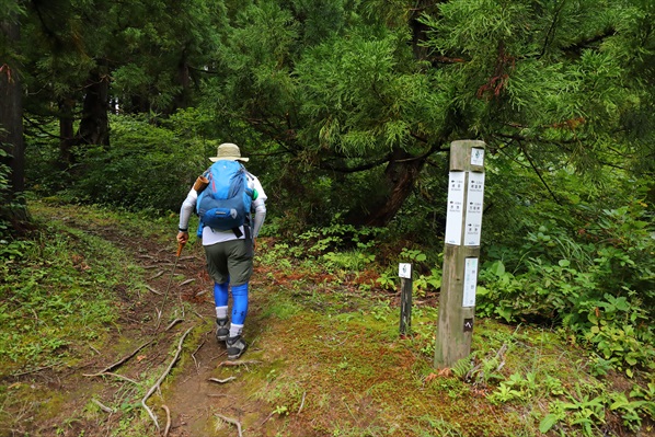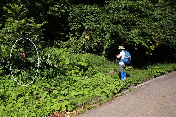 | 藪に覆われて分かりにくい指導標・万坂峠まで0.3` | ||||
