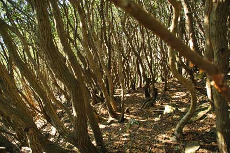 | 富士山を眺めながら岩尾根歩き | ウバメガシ樹林(備長炭の原料) | |||