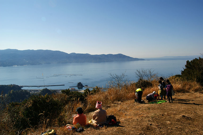 | この辺まで降りてくると家族連れハイカーが多くなる(前方突端は大瀬崎) | ||||