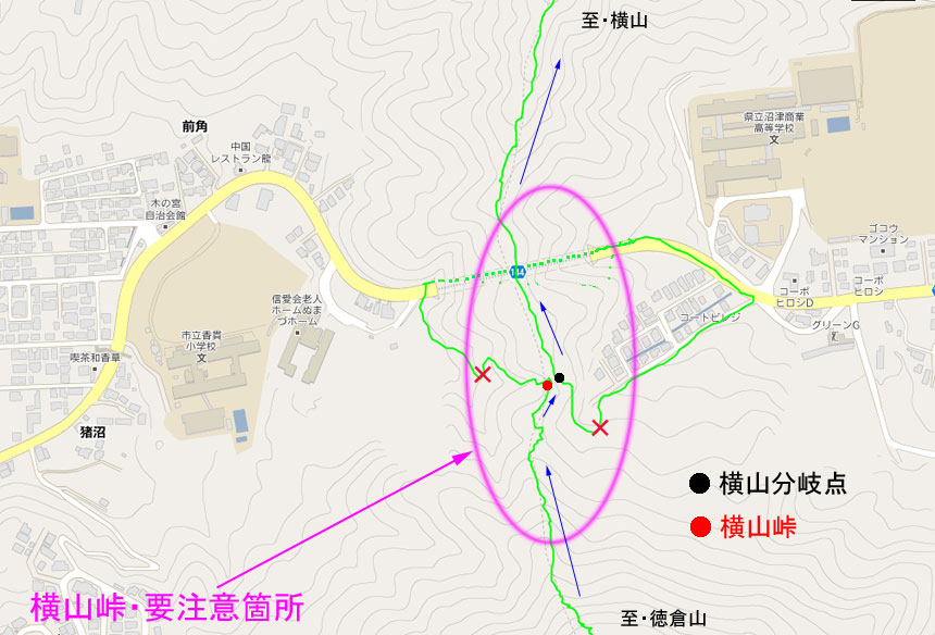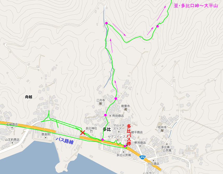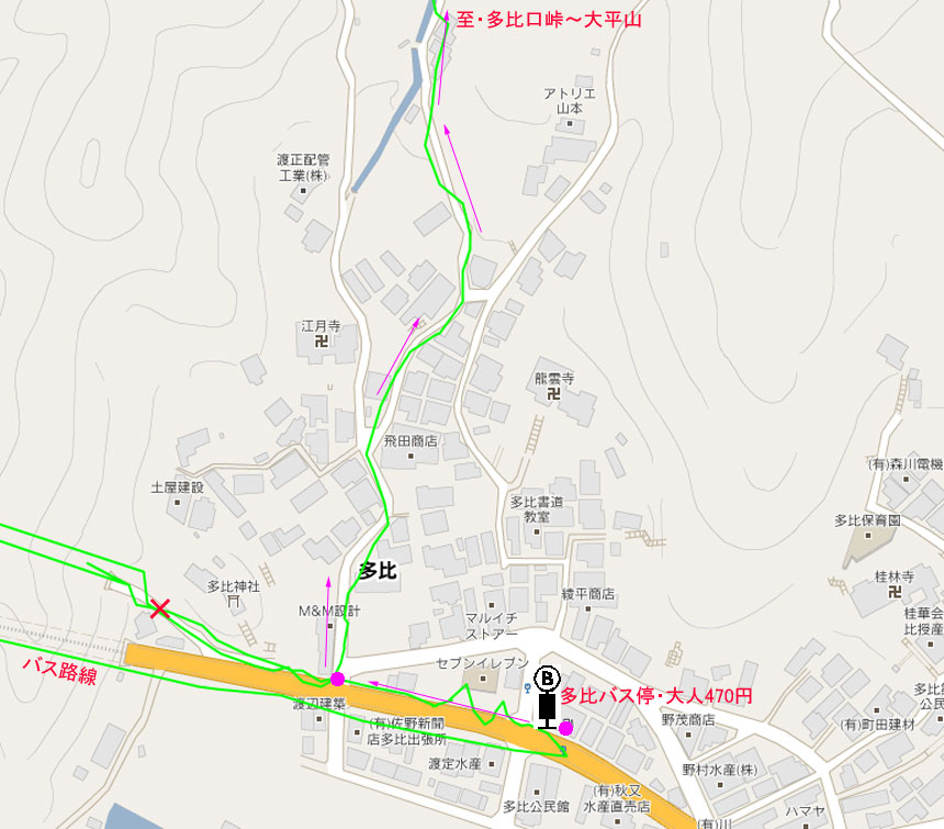 | 多比バス停〜多比口峠(鷲頭山・大平山)方面・住宅街拡大図 | ||||