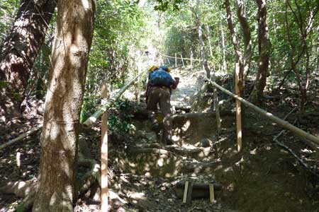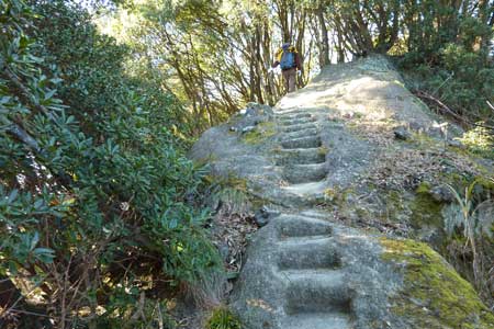 | 岩稜にステップが切られている | 多比峠からの急登にウンザリの管理人 | |||