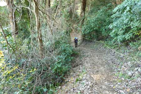 | 小鷲頭山からの下り / 各山頂毎、上り下りともこんな急坂が連続する (T_T) | ||||