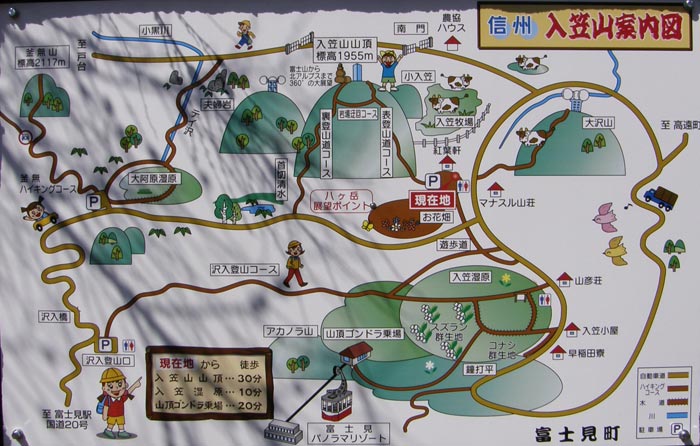 御所平峠の駐車場(トイレ有)から入笠山山頂までは30分程の道のりだ。