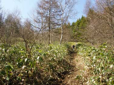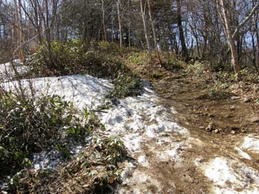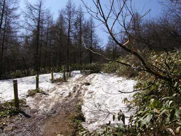 登山時間は短いが2000m級の山だけあって随所に残雪が・・・下山時は膝まで踏み抜いてしまい、