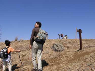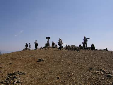 広々とした山頂には一等三角点と方位盤が置かれており、甲斐駒ヶ岳・鳳凰三山・八ヶ岳