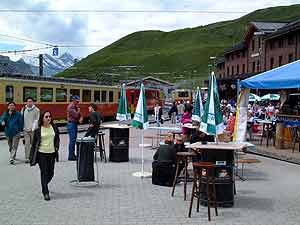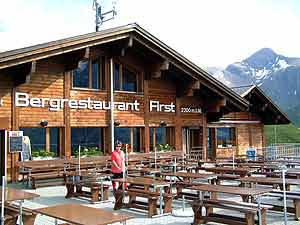 | ユングラウフヨッホへ向かう途中。 ここで昼食。楽しみにしていたラクレットを。 しかし、他においしいものもたーくさん。 |