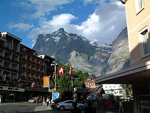 | 4日目:グリンデルワルト 長旅の疲れをいやすべく、ホテルへ・・・ なんとこの日は「☆☆☆☆☆」だったのです。 初めて〜!予定にはないもので、満足満足。 (ちなみにホテルは、右端にちょこっと移って いるもの、写真は山を撮りたかったらしい) |
