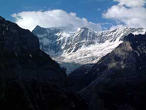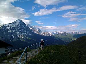 4日目:グリンデルワルト もう1つ疲れを癒してくれたものは、アイガー などの山々です。ここまでずっと天気に恵まれ、 山々は最高!! |