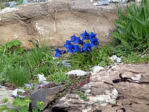 | 5日目:グリンデルワルト 予定は午後からユングラウフヨッホの観光。 その前に、違う山にゴンドラで散策へ。 7月なのに、寒くて花もまばらでした。 |