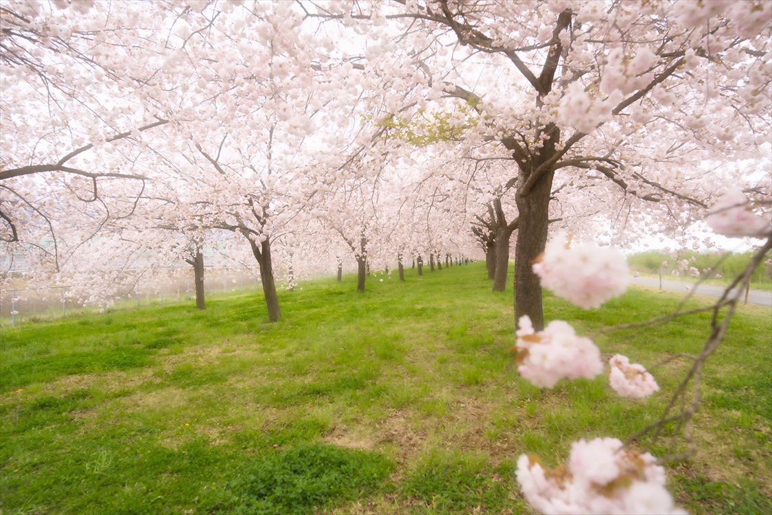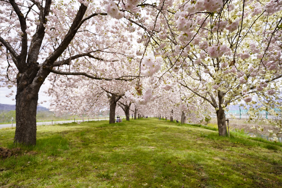栗と葛飾北斎で有名な小布施町の桜つつみ・道の駅おぶせ〜中野市方面へ約4キロの八重桜並木です♪