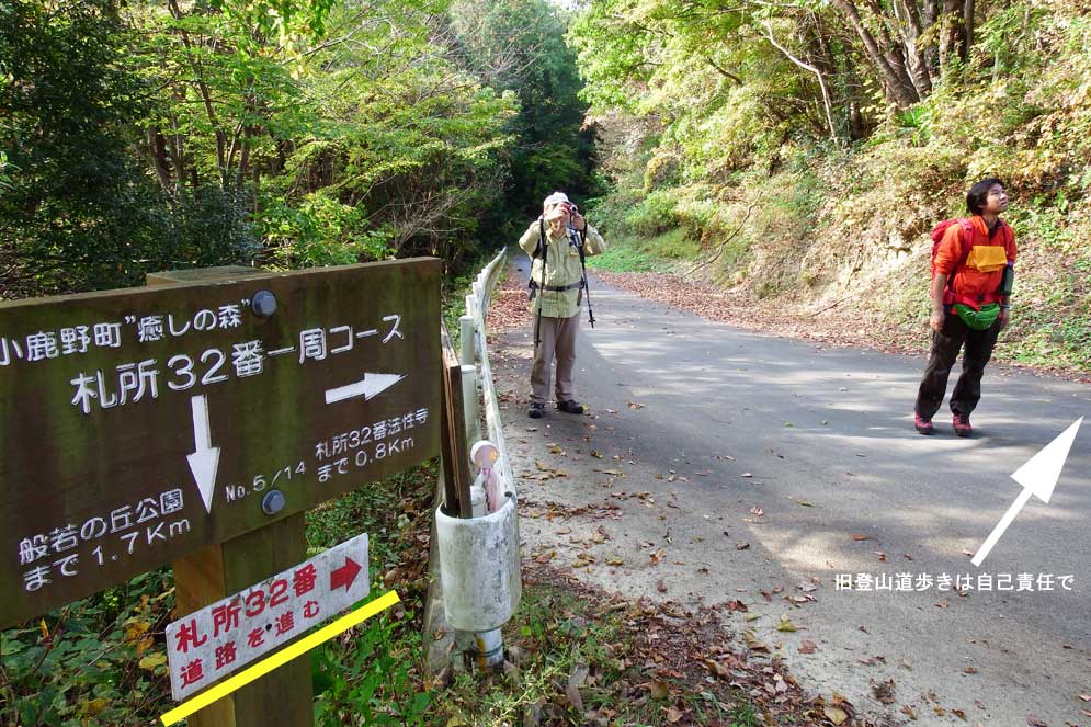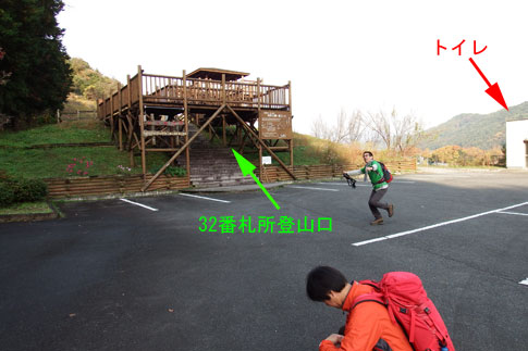 | いきなり登山口から階段歩き | 東屋 32番札所まで2.3㌔指導標 |