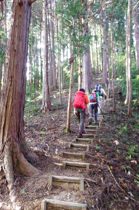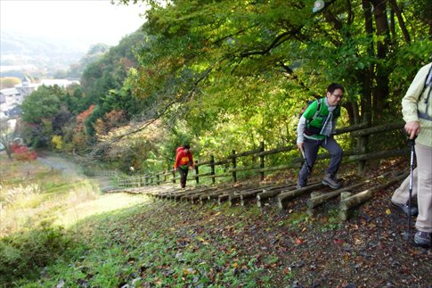 | 樹林帯を歩く | またまた階段だぁ~(怒) ベンチ手前の木階段 |
