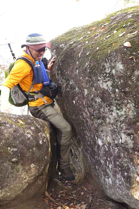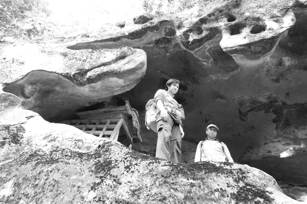 | 胎内潜り?で悪戦苦闘中の伊藤さん | 龍虎岩・胎内観音 | |||