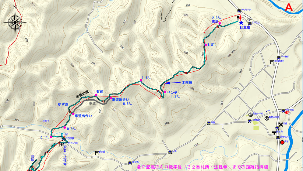 | ベンチ 32番札所まで1.4㌔指導標 |