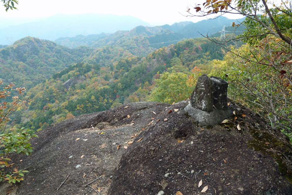 | 二ノ峰 ☆三ノ峰と読めるがここは二の峰 ☆右上の鉄塔から二又尾根を分けて左前方の兎岩へ |