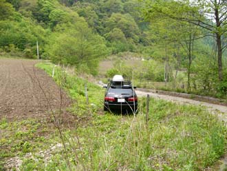 ☆白岩登山口に去年まであった御座山登山口駐車場が野菜畑に変身・・・ |