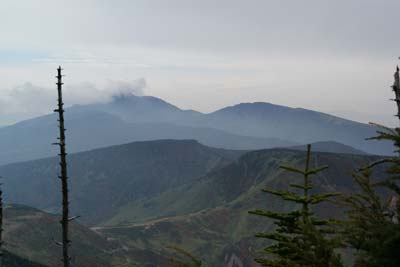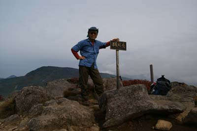 | 展望岩と毛無山 | 破風岳山頂 1999M だいぶ雲行きが怪しくなってきた |