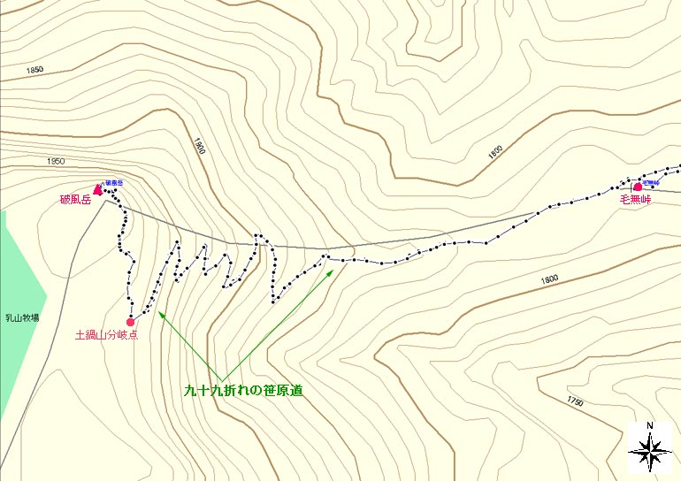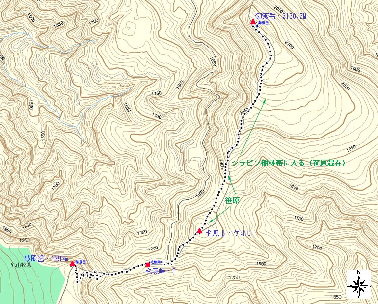 | 毛無峠−破風岳登山地図 | ||||