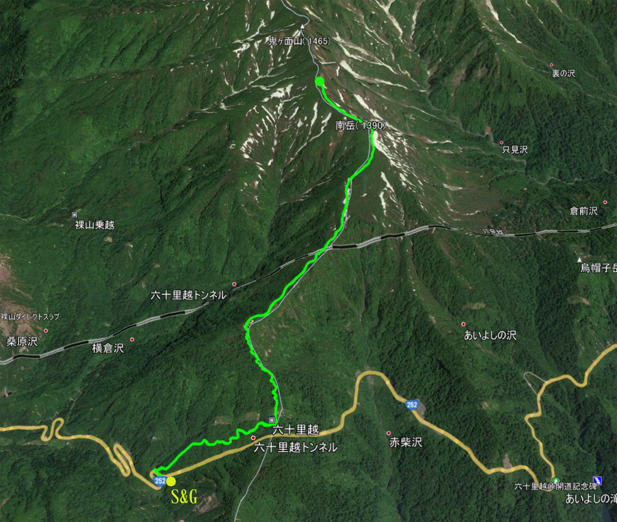 | 鬼ヶ面山鳥瞰図 ヤマレコ⇒https://www.yamareco.com/modules/yamareco/detail-4417717.html |