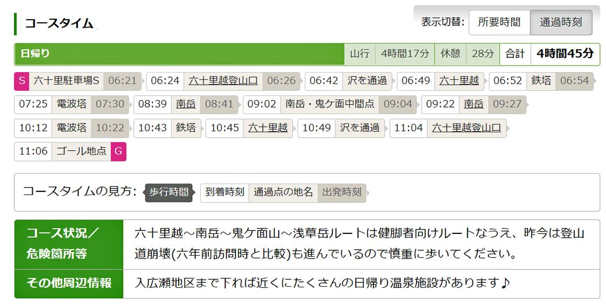 | 《鬼ヶ面山コースタイム他》 写真撮影時間20分〜100分含む |