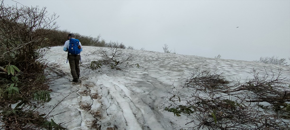 | この残雪をみて今日のヒメサユリ花旅は諦めモードになった爺でございます | ||||
