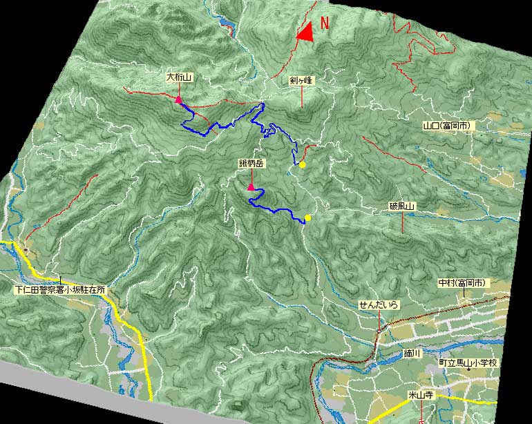 長野〜上信越道下仁田IC〜南蛇井(なんじゃい)〜上信電鉄・せんだいら駅東踏切