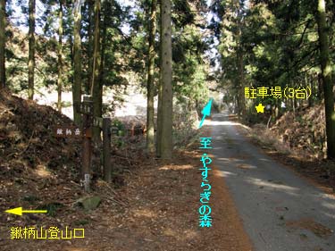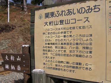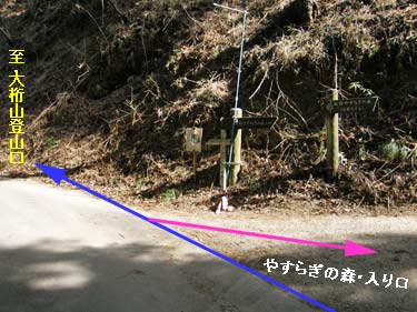 やすらぎの森(キャンプ場)から林道に戻り50b程進むと左に大桁山への指導標がたつ。