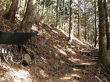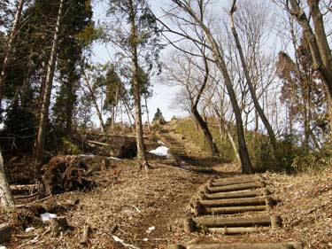 等高線に沿うように(途中に山頂まで700bの指導標あり)山腹を巻いた後、