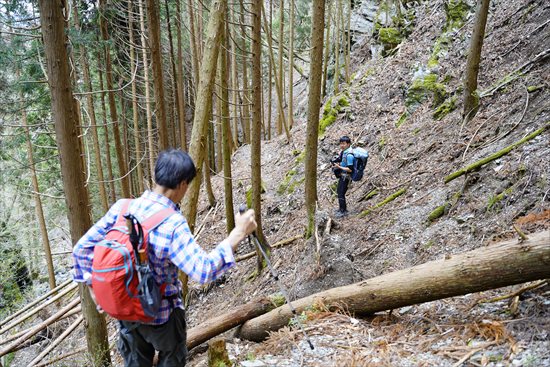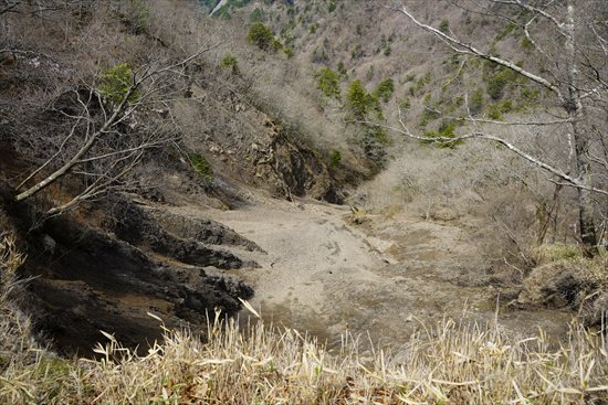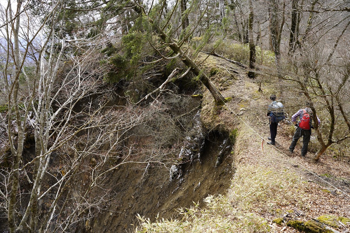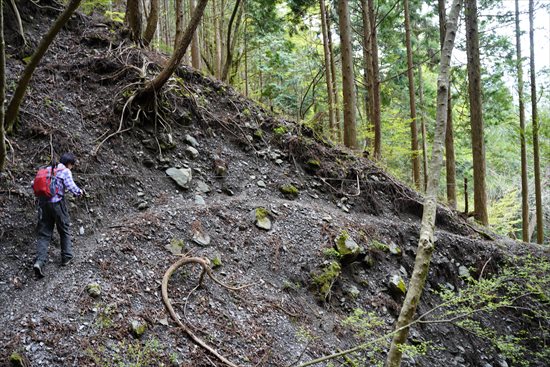 一段上の現場とは違う箇所の土砂崩落斜面 |