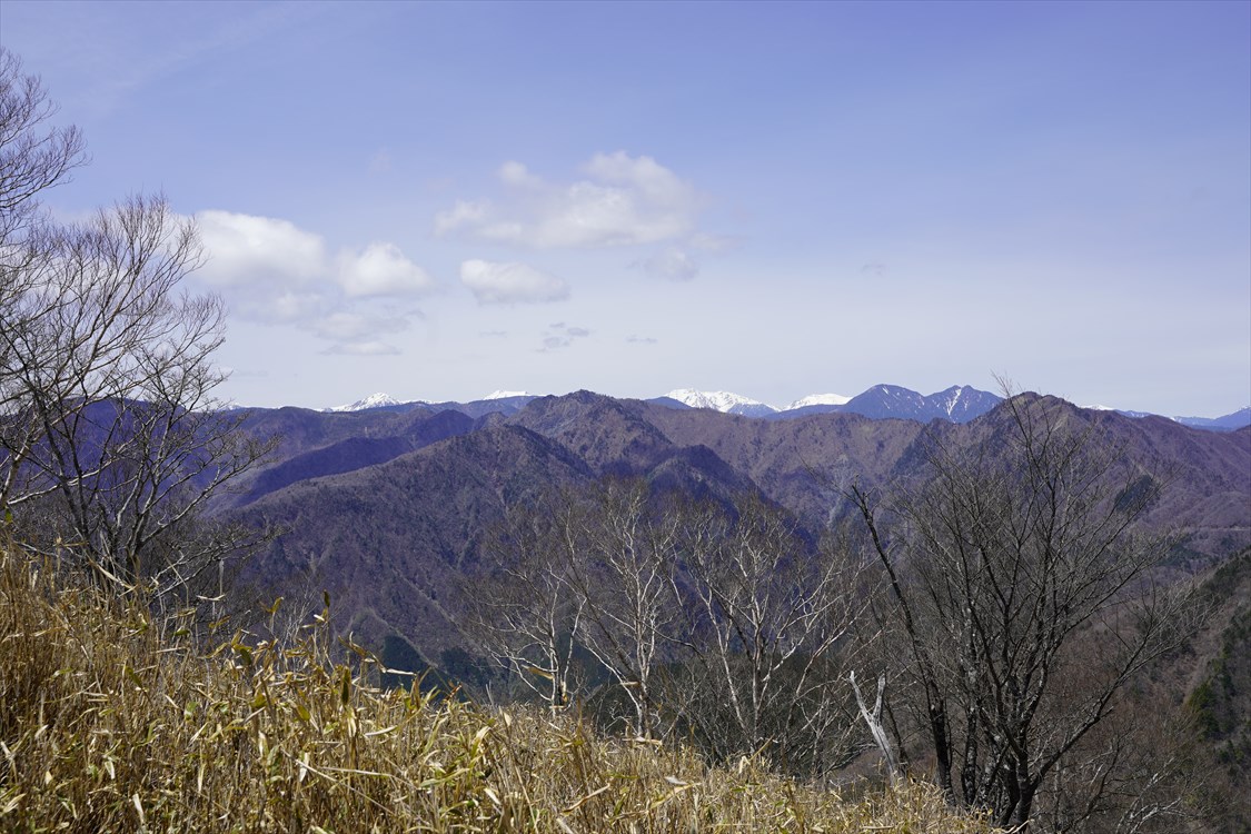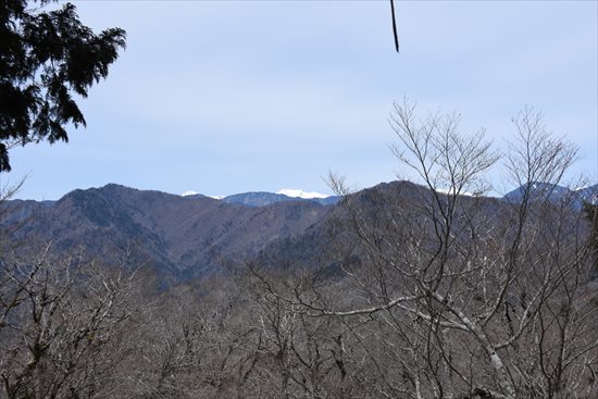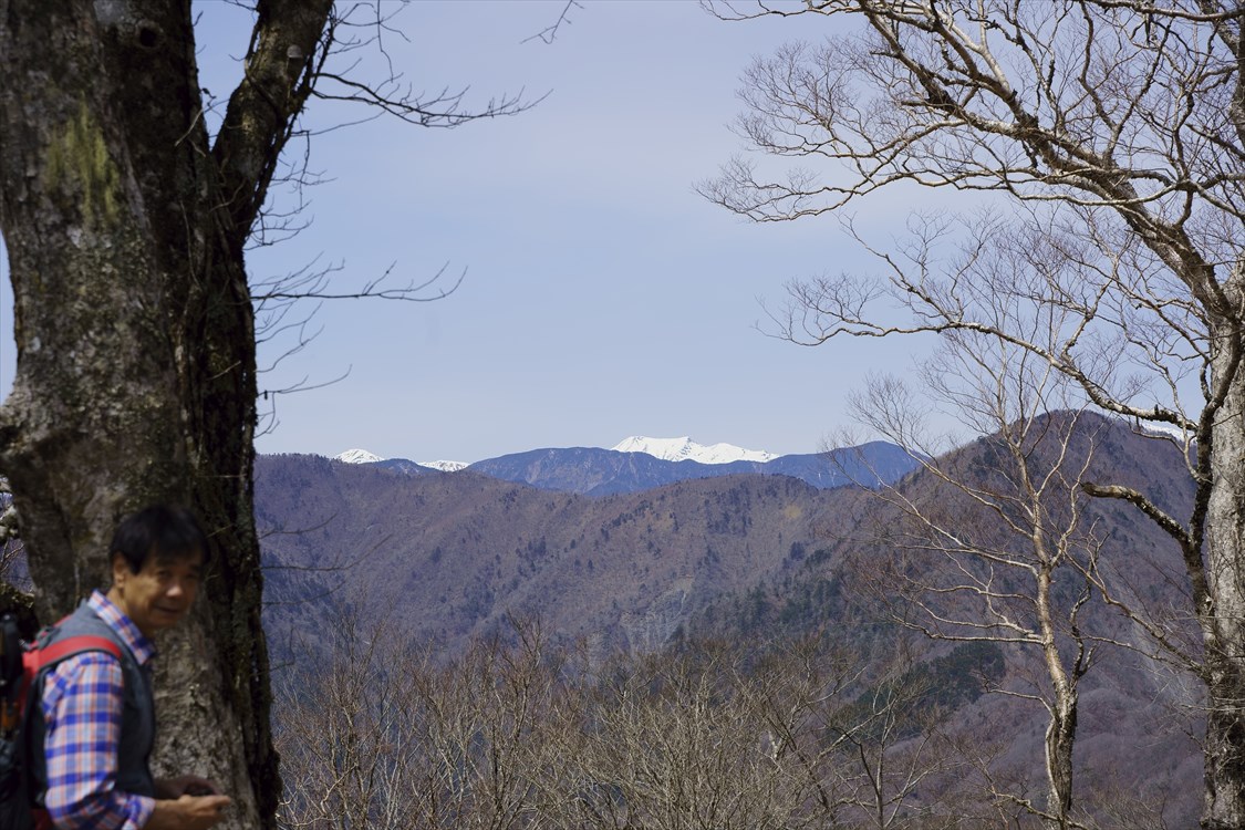 左隅の白い山・上河内岳、中央の白い山・前聖岳 |