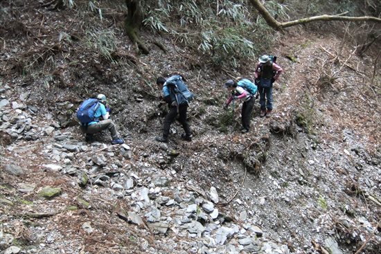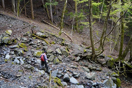 渡渉と呼べるか疑問ですがこのような場所が連続する |
