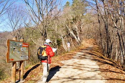 駐車場に設置された大姥山遊歩道の案内板