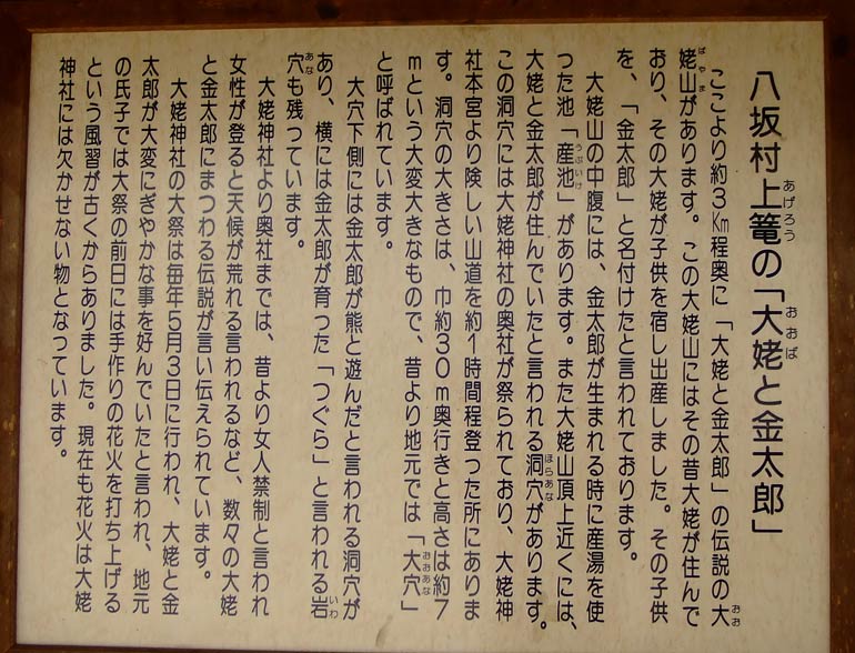 大姥神社前宮の「大姥と金太郎」解説