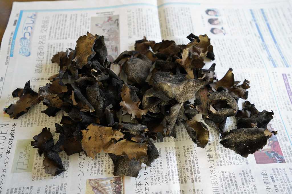 | イワタケ(岩茸) 名前はキノコみたいだけれど「苔」の仲間です (注)この段階でも成長しているためビニール袋での長期保存は厳禁 |