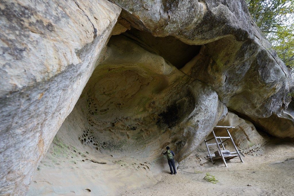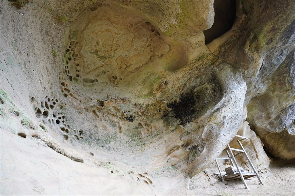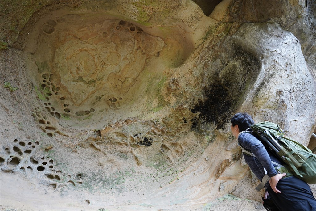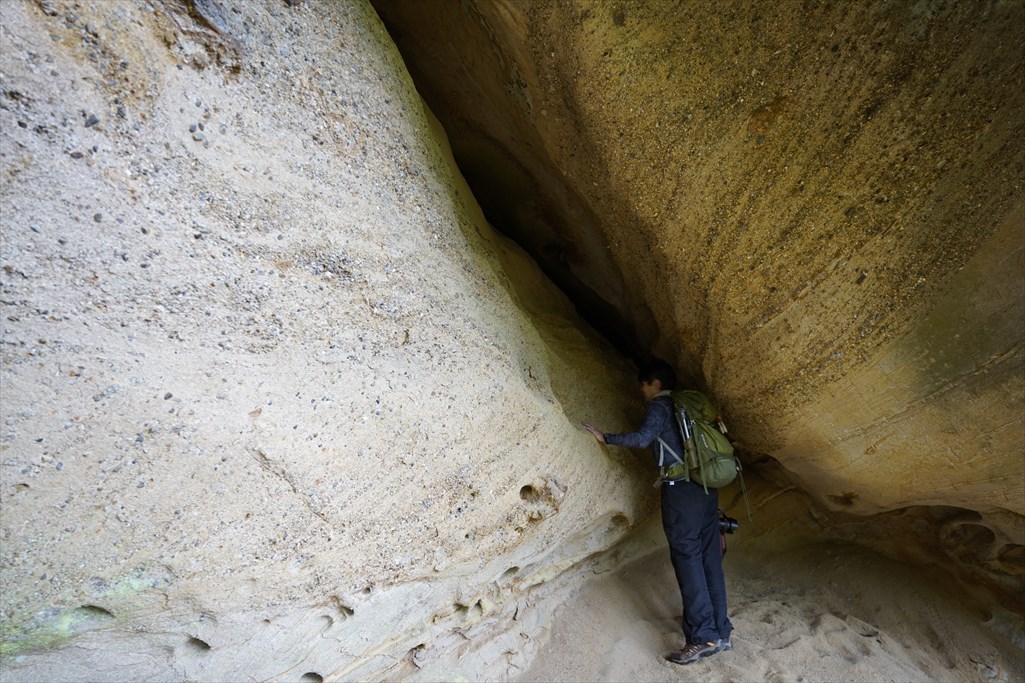 | 洞窟奥の岩の割れ目に耳を当てると「海の音」が聞こえると伝わる | ||||